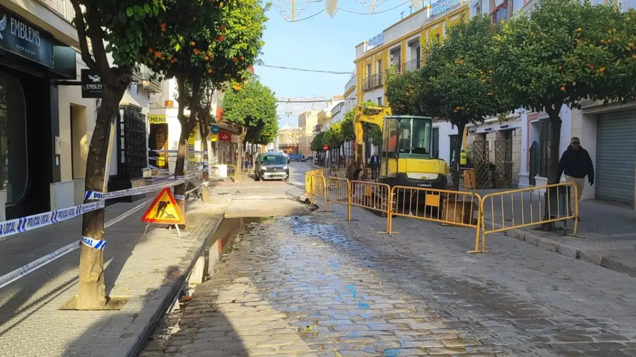 Marchena Un socavón frente al 'GM Hotel' de Marchena obliga a modificar el tráfico: así queda la calle Orgaz y la parada de autobús J.J. Sarabia RSS 09/dic/25