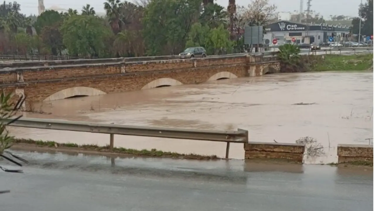El Corbones supera los tres metros de altura a su paso por La Puebla de Cazalla y activa el aviso rojo
