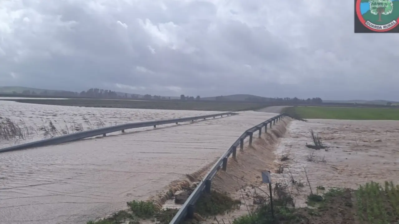 Marchena Cortada la carretera Marchena-Lantejuela por inundación del río Corbones J.J. Sarabia RSS 05/feb/26