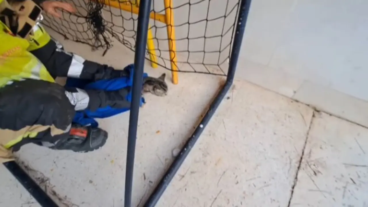 Marchena Los bomberos de Marchena liberan a un gatito atrapado en una red del instituto 'López de Arenas' J.J. Sarabia RSS 12/feb/26