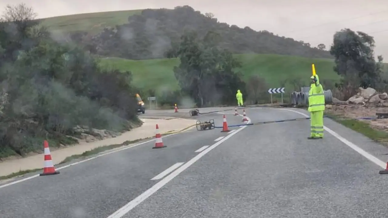 Morón de la Frontera La carretera Pruna–Morón registra balsas de agua y obliga a extremar la precaución al volante: se usan bombas de achique
