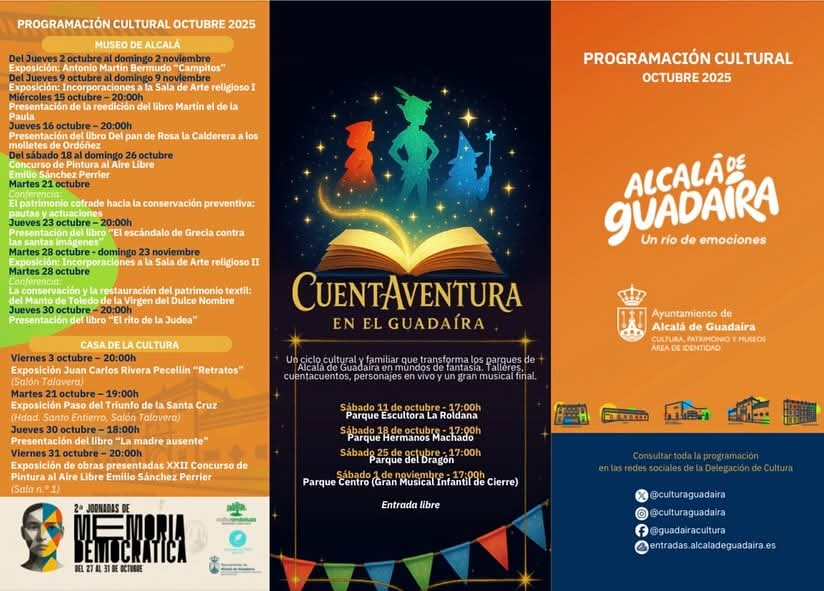El Museo de la Ciudad cobra también especial relevancia con la 8ª edición del Ciclo de Autores Alcalareños, dedicado a Antonio Martín Bermudo ‘Campitos’, además de exposiciones de arte, el primer Ciclo de Conservación Preventiva y presentaciones literarias. Entre ellas, destaca Paisajes con letras y la colección Historias contadas, que busca rescatar relatos locales de gran valor cultural y social. También se presentará la reedición de Joaquín el de la Paula, clásico de Eugenio Noel inspirado en el legendario cantaor alcalareño con motivo del 150 aniversario de su nacimiento.