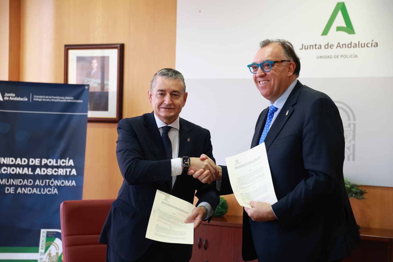 El consejero de la Presidencia, Interior, Diálogo Social y Simplificación Administrativa de la Junta de Andalucía, Antonio Sanz, y el consejero de Turismo y Andalucía Exterior, Arturo Bernal, han firmado un convenio de colaboración para poner en marcha el Grupo Titán (Trazabilidad e Inspección Turística de Andalucía) de la Unidad de Policía Nacional Adscrita a la Comunidad Autónoma de Andalucía (UPA), un cuerpo especializado que reforzará la seguridad jurídica, la calidad y la sostenibilidad del sector turístico en la comunidad.
