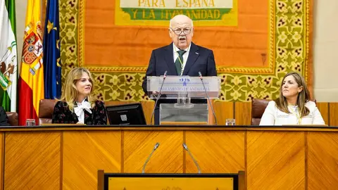 Finalmente, el presidente de la Cámara también ha pedido "unidad y contundencia" en la lucha contra la violencia de género o el narcotráfico y ha exigido "abordar de una forma especial una realidad inadmisible como es el acoso escolar". Asimismo, ha recordado la importancia del pueblo gitano para Andalucía y se ha referido a personalidades andaluzas como Averroes, del que en este 2026 se cumplen 900 años de su nacimiento; la poeta malagueña María Victoria Atencia, Premio Nacional de las Letras 2025 e Hija Predilecta de Andalucía; Camarón de la Isla, que en diciembre pasado hubiera cumplido 75 años de vida; o Carlos Cano, del que el pasado mes de diciembre se cumplieron 25 años de su fallecimiento.