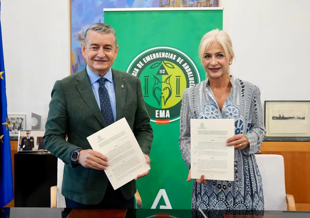 El consejero de la Presidencia, Interior, Diálogo Social y Simplificación Administrativa, Antonio Sanz, y la consejera de Cultura y Deporte, Patricia del Pozo, han firmado hoy un acuerdo de colaboración para el refuerzo de las actuaciones relacionadas con la protección y salvaguarda del patrimonio cultural andaluz ante posibles riesgos en situaciones de emergencia.