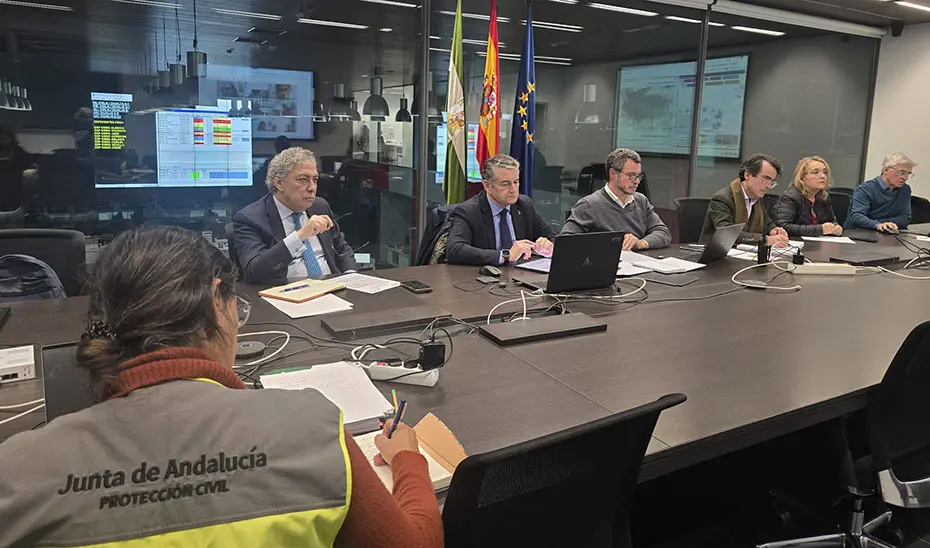 El consejero elevó esta tarde, a las 15:04 horas, la fase de emergencia, situación operativa 1 el Plan de Emergencias ante el Riesgo de Inundaciones (PERI) en Andalucía, que desde el viernes se mantenía activado en fase de preemergencia, ante el paso de varias borrasca por la comunidad.