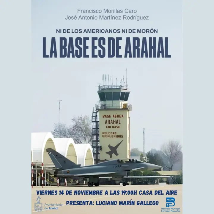 El Auditorio de la Casa del Aire de Arahal acogerá el próximo viernes 14 de noviembre, a las 19:00 horas, la presentación del libro ‘Ni de los americanos ni de Morón, la Base es de Arahal’, escrito por Francisco Morillas Caro y José Antonio Martínez Rodríguez. El acto estará presentado por Luciano Martín Gallego.
