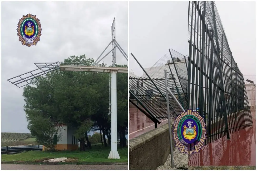 La última actualización de la Policía Local informa de una nueva incidencia en la valla de la pista deportiva situada entre las calles Los Molares y Estepa. El viento ha provocado que la valla ceda y quede inclinada sobre la propia instalación, generando una situación de peligro. La zona ha sido señalizada y la pista deportiva permanece cerrada hasta que se proceda a su reparación, con el aviso expreso de no acercarse al lugar.