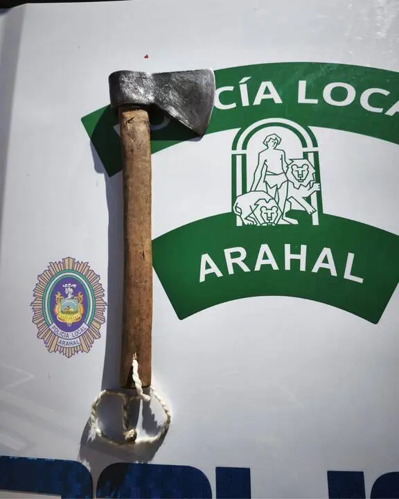 Durante el cacheo, los agentes comprobaron que el hombre llevaba un hacha de grandes dimensiones y muy afilada oculta en el interior del pantalón, además de una navaja. El material fue intervenido de inmediato por motivos de seguridad.