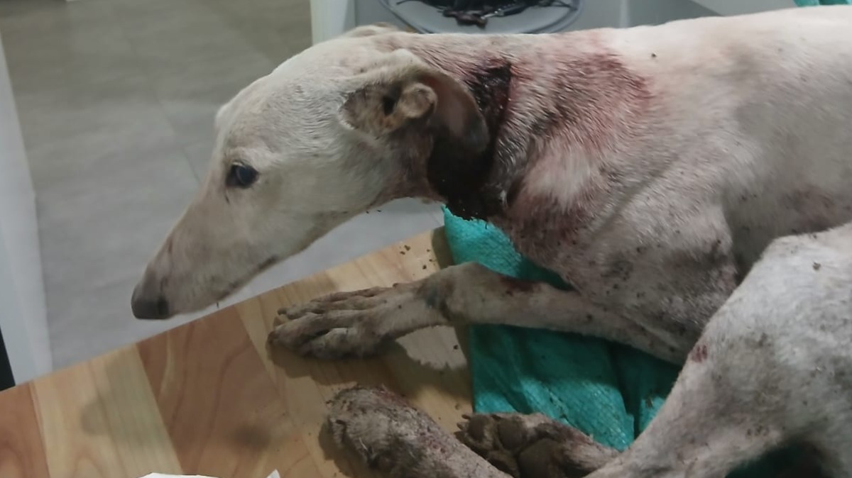 El aviso se recibió a las 8:39 horas por parte del servicio de recogida de basuras del Ayuntamiento de Arahal, lo que permitió la rápida intervención de la patrulla de servicio. A su llegada, los agentes comprobaron que la galga había sido golpeada y presentaba una lesión importante en el cuello, además de tener fracturada la pata delantera derecha.