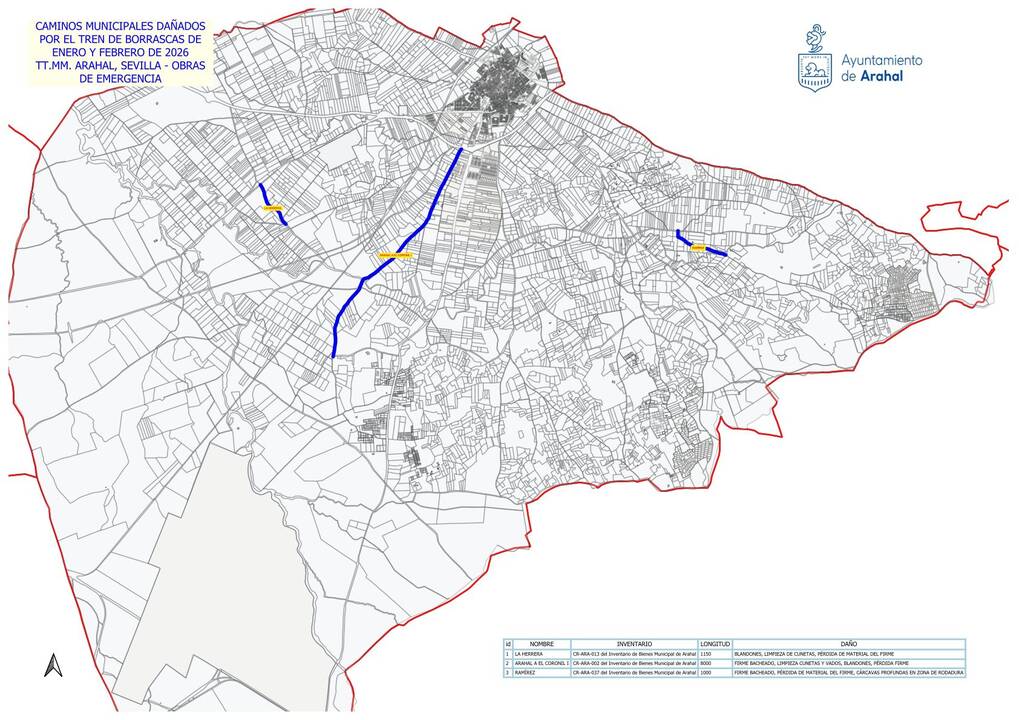 El presupuesto autonómico se distribuirá en tres grandes ejes de actuación dentro del municipio. La intervención de mayor calado se ejecutará en el camino Arahal – Coronil, que absorberá un montante de 120.844,17 euros. Le sigue de cerca el arreglo proyectado en el Camino de La Herrera, valorado en 104.731,60 euros, mientras que los 48.337,66 euros restantes se inyectarán en la restauración integral del Camino Ramírez.