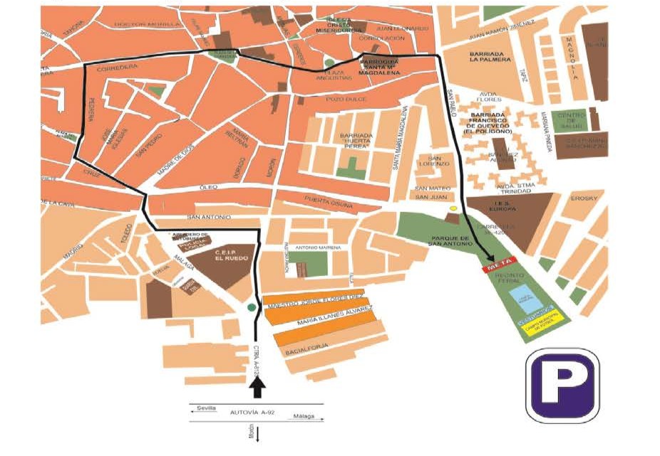 Según ha detallado el Ayuntamiento, los cortes de tráfico afectarán a la carretera A-8125 (carretera de Morón), la rotonda de La Cal y el Olivo, las calles Morón, El Ruedo, Málaga, Cruce del Bar, Cruz, Pedrera, Corredera, Plaza de la Corredera, Veracruz, Iglesia, Marchena, Carmona, San Pablo y el entorno del Recinto Ferial.