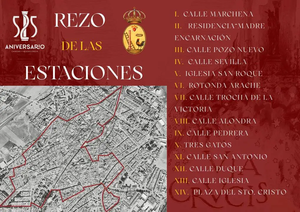La Hermandad de la Santa Caridad y Misericordia celebrará el 14 de febrero un Vía Crucis extraordinario con motivo de su 525 aniversario, un acto religioso que recorrerá numerosas calles de Arahal y que contará con un dispositivo especial de tráfico.
