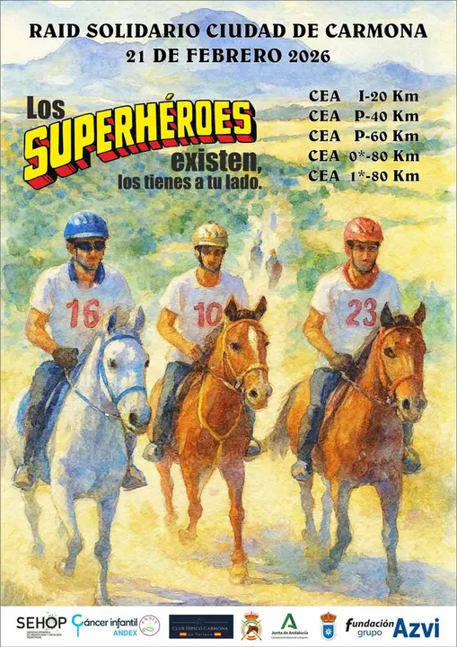 Carmona acogerá el próximo 21 de febrero de 2026 un raid hípico solidario a beneficio de la asociación ‘Los Superhéroes Existen’, una entidad sin ánimo de lucro que trabaja para recaudar fondos destinados a ayudar a niños con cáncer y a sus familias a través de Andex y la SEHOP. La prueba estará organizada por el Club Caballista Carmona y nace con un marcado carácter benéfico y simbólico, uniendo la idea de la resistencia deportiva con la lucha diaria que afrontan estos niños.