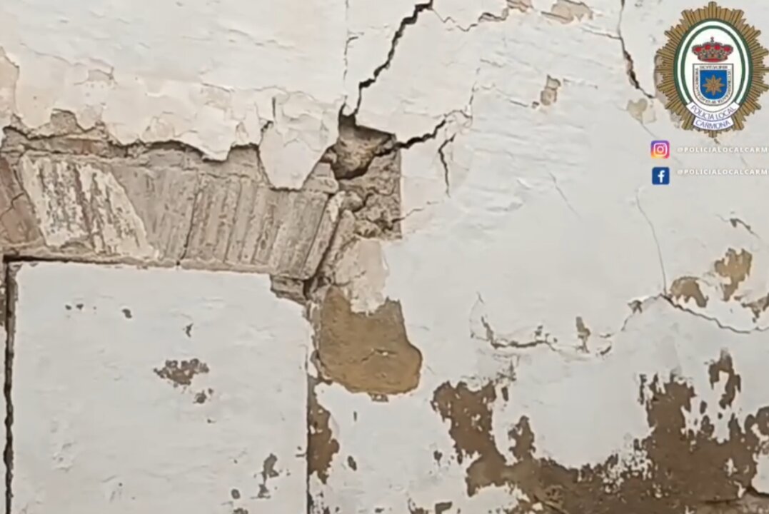 La Policía Local de Carmona ha vallado la vía para impedir el paso y ha prohibido también el acceso de vehículos hacia Torno de Santa Clara desde las calles Fermín Molpeceres y la Plaza de San José, mientras se mantiene la evaluación técnica en curso.