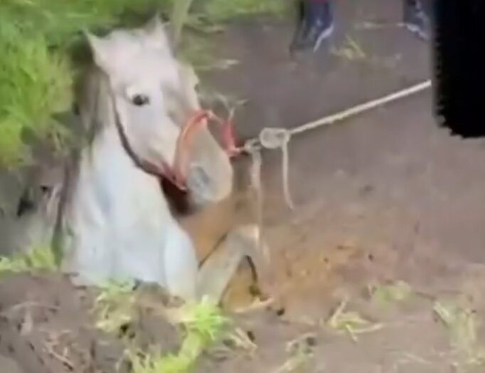 El aviso movilizó dos dotaciones de bomberos, que se desplazaron hasta el lugar para llevar a cabo las labores de rescate. La complejidad de la situación obligó a los efectivos a trabajar con precaución para evitar daños al equino durante la extracción.