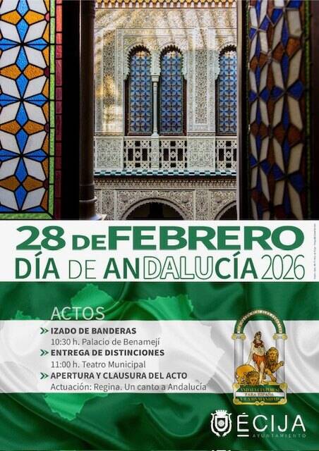 El Ayuntamiento de Écija ha dado a conocer las Distinciones del 28 de Febrero, Día de Andalucía 2026, con las que reconoce la trayectoria y aportación de personas y colectivos del municipio.