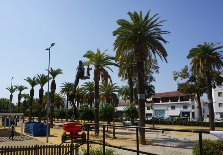 El Ayuntamiento de Écija ha comenzado la poda integral de las palmeras y del resto de la arboleda del Parque San Pablo. El delegado de Medio Ambiente, Carlos Onetti, ha explicado que estos días se centran en la limpieza y saneamiento de las palmeras y los naranjos del parque, antes de continuar por la zona de Las Huertas, donde también se actuará sobre las palmeras situadas junto al río.