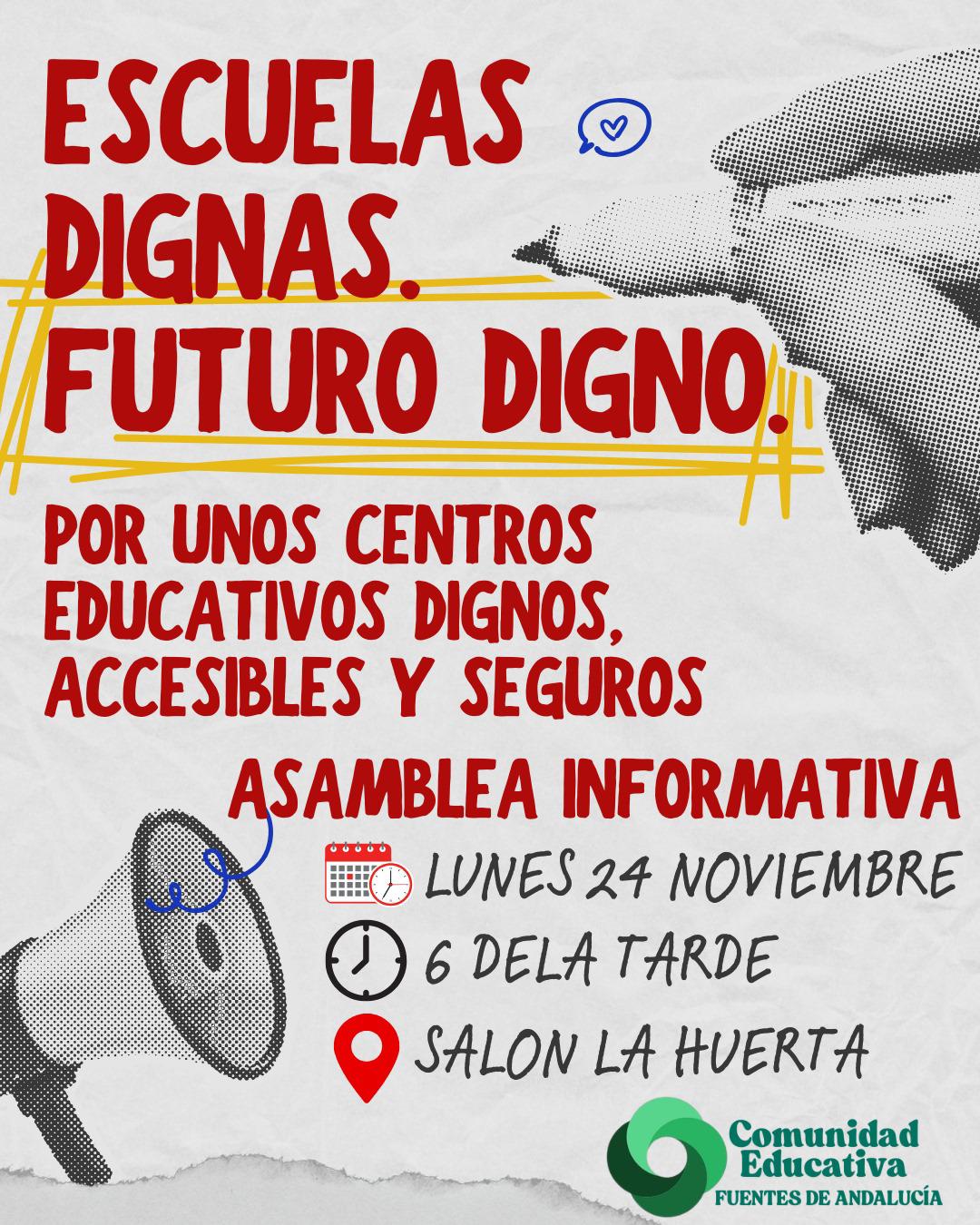 En este encuentro se explicará la situación real, las inversiones denegadas y el plan de movilización que se desarrollará en las próximas semanas, incluyendo acciones públicas, recogida de firmas y concentraciones cívicas. Esta defensa de la educación pública requiere la participación y unidad de familias, alumnado, profesorado, AMPAs y del propio Ayuntamiento.