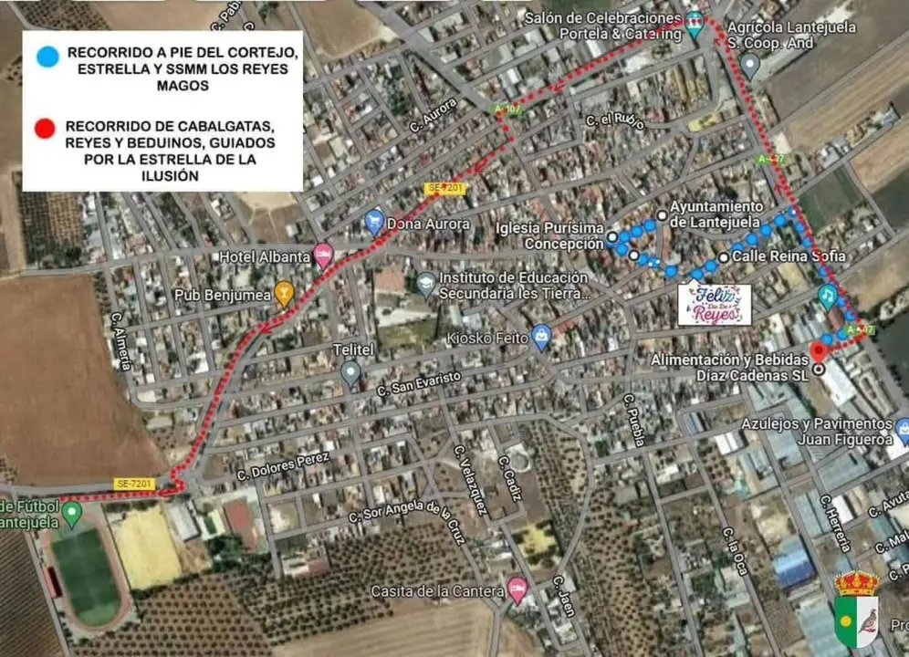 El Ayuntamiento de La Lantejuela ha decidido aplazar la Cabalgata de Reyes Magos debido a las inclemencias meteorológicas previstas, tras mantener una reunión en la tarde de hoy con los y las representantes del cortejo real, incluyendo a quienes encarnarán a Sus Majestades, la Estrella de la Ilusión, la carroza infantil, los Beduinos y miembros del equipo de gobierno municipal.
