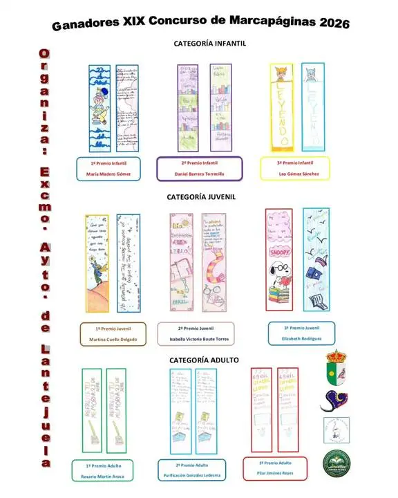 La delegación de Cultura del Ayuntamiento de Lantejuela ha celebrado el Día del Libro con la resolución de uno de sus certámenes más participativos. La Biblioteca 'Miguel Hernández', que fomenta la lectura durante todo el año como herramienta de aprendizaje y libertad, ha sido el escenario virtual de la presentación de los ganadores del XIX Concurso de Marcapáginas 2026. Esta iniciativa ha logrado movilizar a vecinos de todas las edades, quienes han demostrado su talento y creatividad a través de diseños originales que servirán de acompañamiento a los lectores de la localidad.