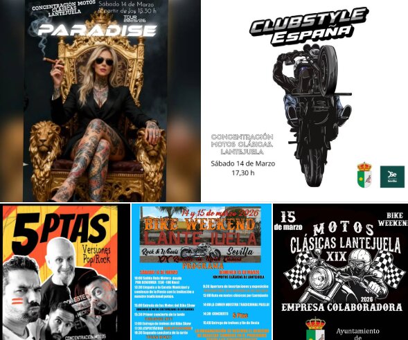 El municipio de Lantejuela acoge el próximo fin de semana, 14 y 15 de marzo, la celebración de la Bike Weekend, que engloba la XIX Reunión de Motos Clásicas 2026. Este evento, organizado por Customs Bikers, reunirá a numerosos aficionados y visitantes en torno al mundo del motor en una cita consolidada en el calendario local.