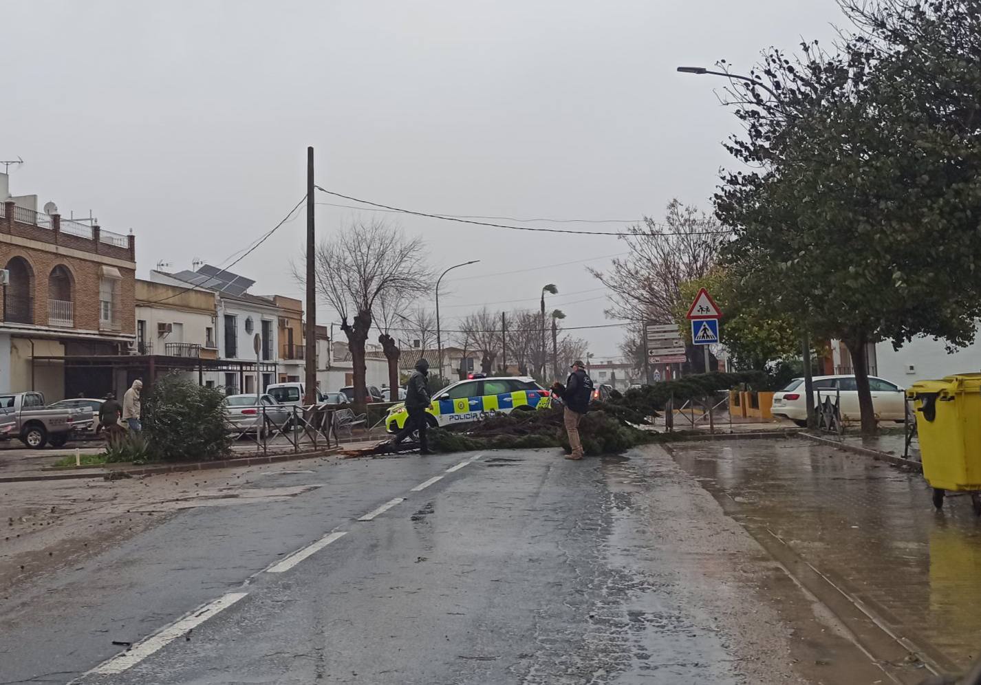 Lantejuela ha registrado durante la mañana de hoy varias incidencias como consecuencia del paso de la borrasca Kristin, principalmente relacionadas con la caída de ramas y árboles en distintos puntos del municipio.
