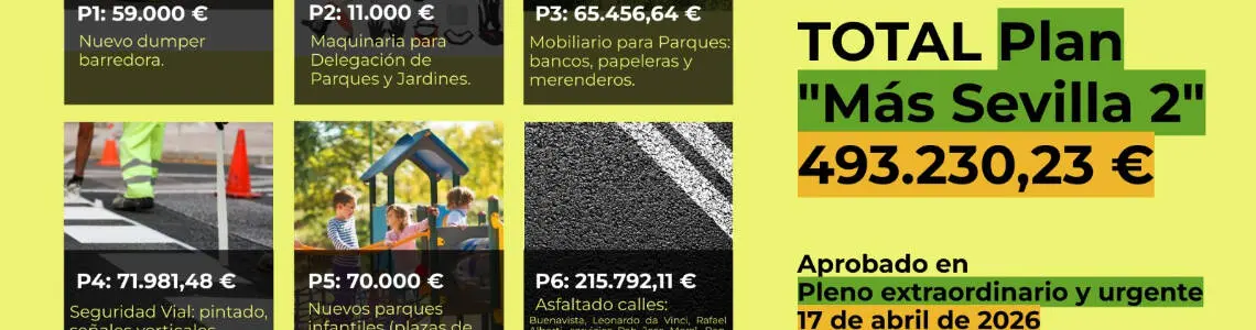 El alcalde de Los Palacios y Villafranca, Juan Manuel Valle, junto al delegado de Urbanismo, José Manuel Triguero, ha presentado las seis actuaciones que se desarrollarán en el municipio gracias al plan Más Sevilla 2. Con una inversión total de 493.230 euros procedentes de la Diputación de Sevilla, el consistorio busca dar un nuevo impulso a las infraestructuras locales y la calidad de los servicios públicos. El programa, aprobado el pasado 17 de abril, se divide en varias líneas estratégicas que abarcan desde el asfaltado de vías hasta la adquisición de maquinaria especializada para el mantenimiento urbano.