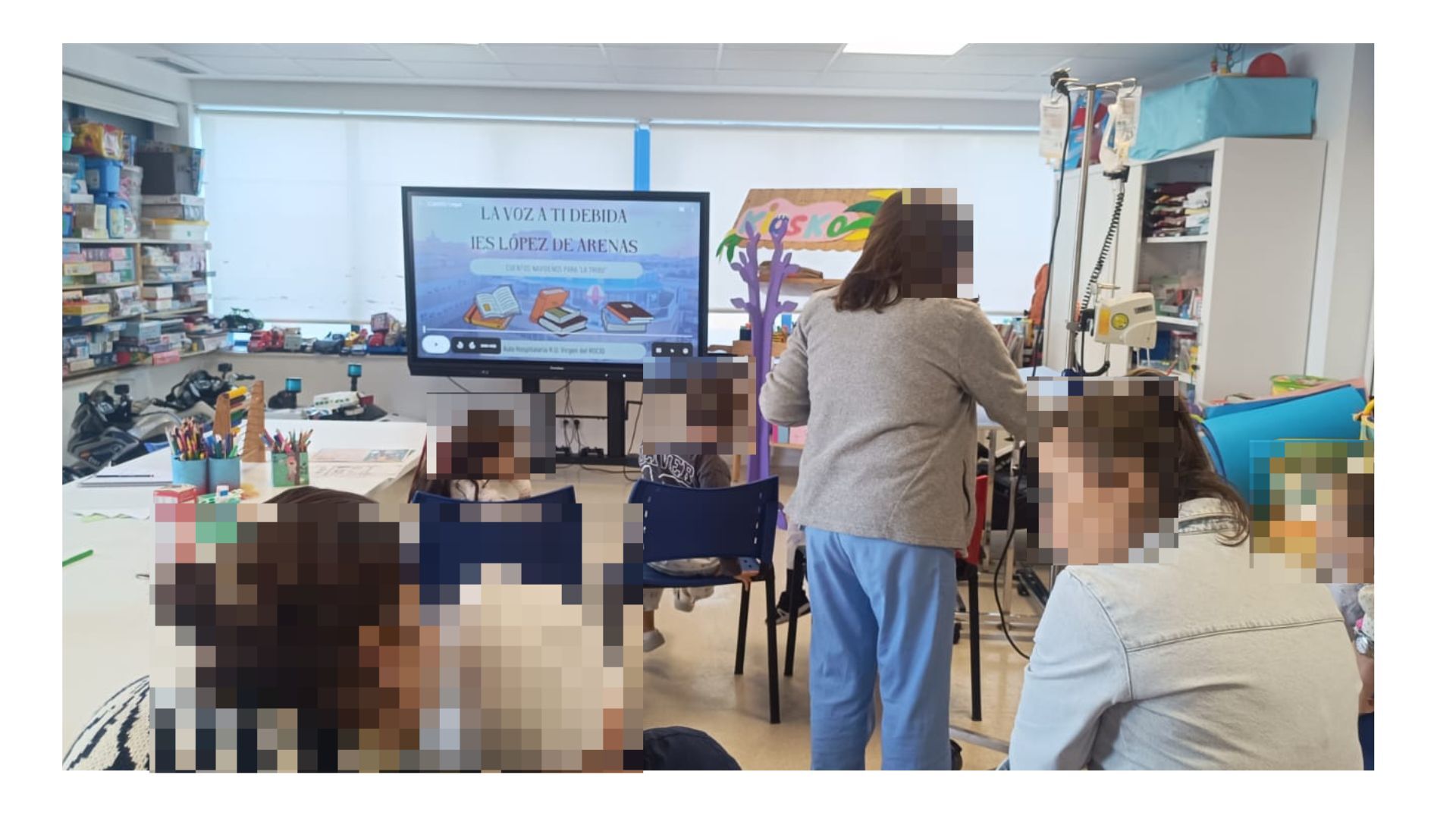 Las alumnas participantes han escrito cuentos originales de Navidad, que posteriormente han sido proyectados en el aula hospitalaria, permitiendo que las historias cobraran vida para los menores ingresados. Durante la actividad, los relatos sirvieron para romper la rutina hospitalaria y ofrecer apoyo emocional a través de la narración.