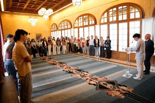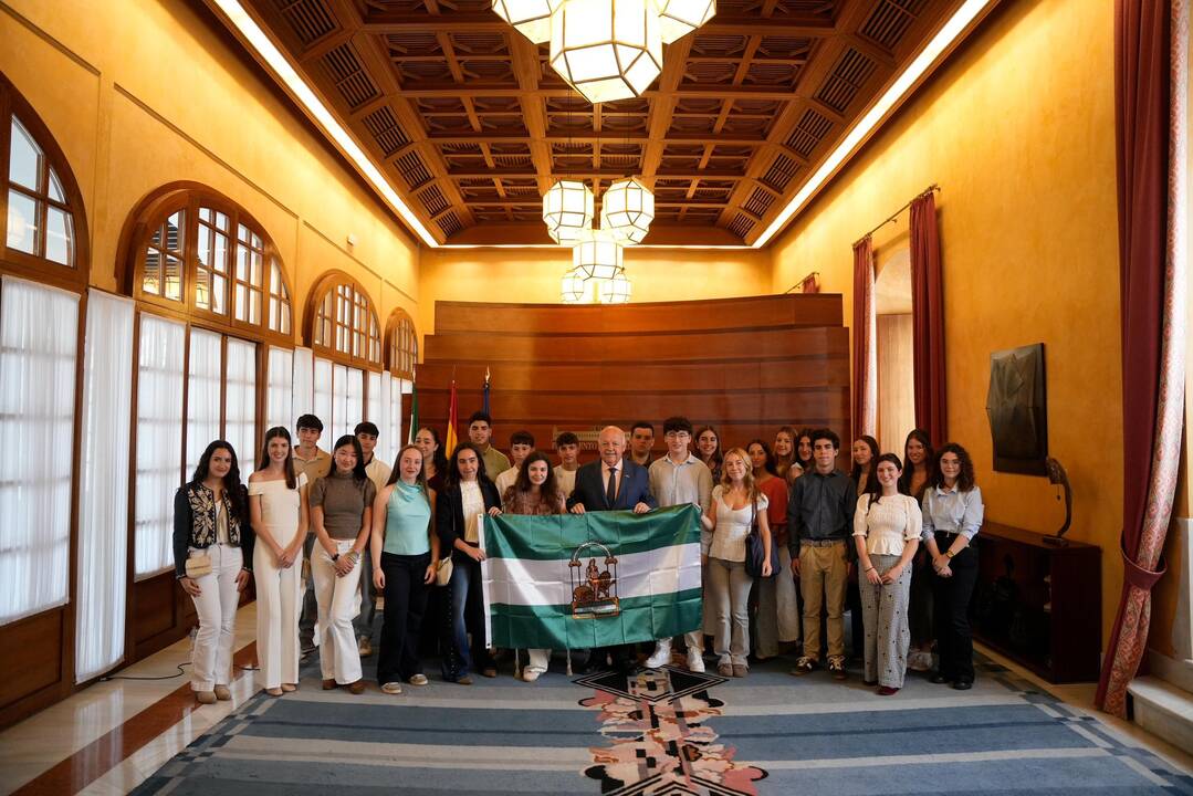 El joven marchenero Álvaro Guisado López ha sido seleccionado para participar en la Ruta Quetzal del año 2026, una de las expediciones formativas más emblemáticas del ámbito iberoamericano. El estudiante, que cursa 4 ESO en el instituto 'López de Arenas', destaca por poseer un expediente académico excelente y un nivel B2 de idiomas, además de ser futbolista en el equipo cadete del Marchena Balompié. Este martes, los 35 seleccionados de la comunidad autónoma han participado en un acto oficial en el Parlamento de Andalucía, donde el presidente de la cámara, Jesús Aguirre, les ha hecho entrega de la bandera de Andalucía que portarán durante toda la expedición.