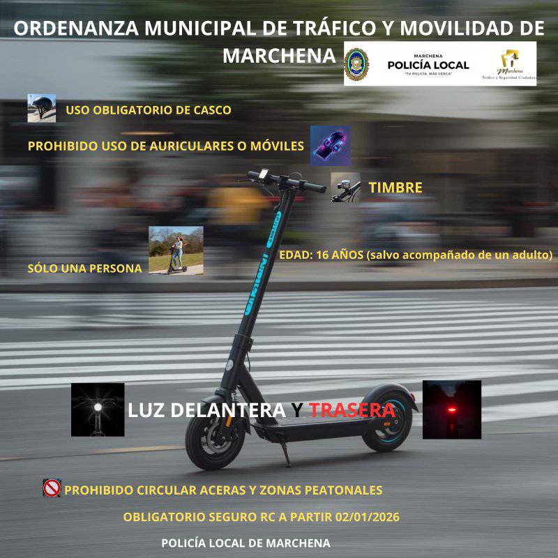 La Policía Local de Marchena ha puesto en marcha una campaña de información y concienciación sobre las normas que regulan el uso de los vehículos de movilidad personal (VMP), como los patinetes eléctricos. El objetivo es reforzar la seguridad vial y recordar a los usuarios las obligaciones que deben cumplir para evitar sanciones y accidentes.