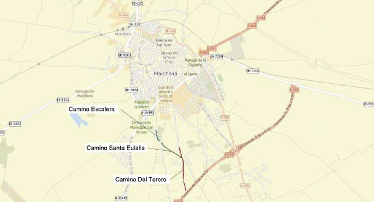 El Ayuntamiento de Marchena ha abierto el proceso de licitación para las obras de mejora de los caminos Escalera, Santa Eulalia y del Torero, situados en la zona sur del núcleo urbano. Estas vías, muy utilizadas por agricultores e industrias, presentan un notable deterioro en su firme, con socavones, blandones y pérdida de material debido al tránsito de vehículos y a la deficiente red de drenaje.