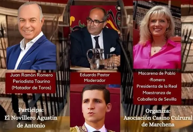 El acto contará con la participación de Macarena de Pablo-Romero, presidenta de la Real Maestranza de Caballería de Sevilla, el periodista taurino Juan Ramón Romero y el novillero marchenero Agustín de Antonio, en un diálogo que abordará la tauromaquia desde la gestión institucional, la crónica periodística y la experiencia directa en el ruedo.