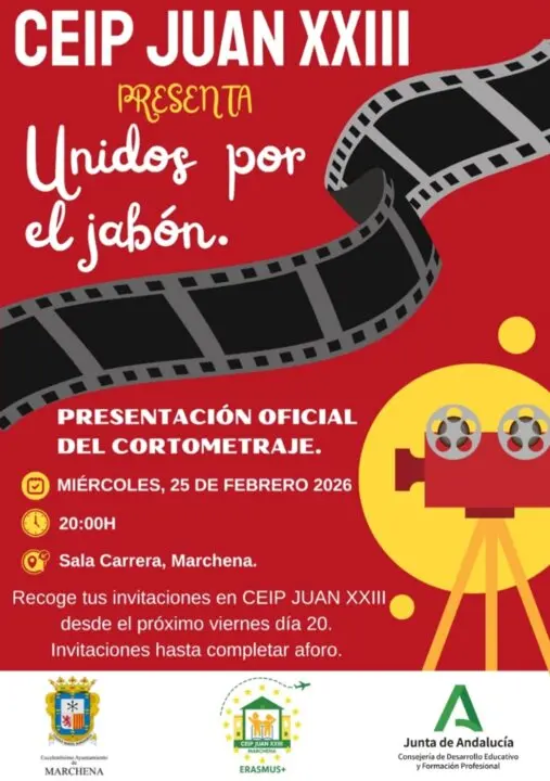 l colegio ‘Juan XXIII’ de Marchena celebrará el miércoles 25 de febrero de 2026 la presentación oficial del cortometraje ‘Unidos por el jabón’, una iniciativa educativa con un marcado carácter solidario que se estrenará en la Sala Carrera a las 20:00 horas.
