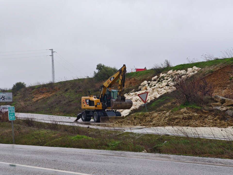 Los trabajos incluyen la limpieza de aterramientos en arcenes y drenajes, así como la estabilización de un talud que se había deslizado como consecuencia de las condiciones meteorológicas recientes.