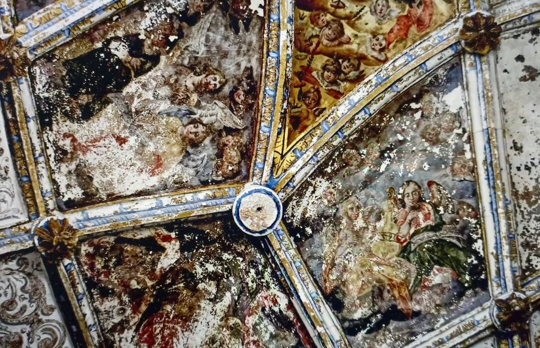 Estas filtraciones dañaron la bóveda y deterioraron progresivamente los frescos, provocando la pérdida de parte de la policromía y el apagado del dorado original.
