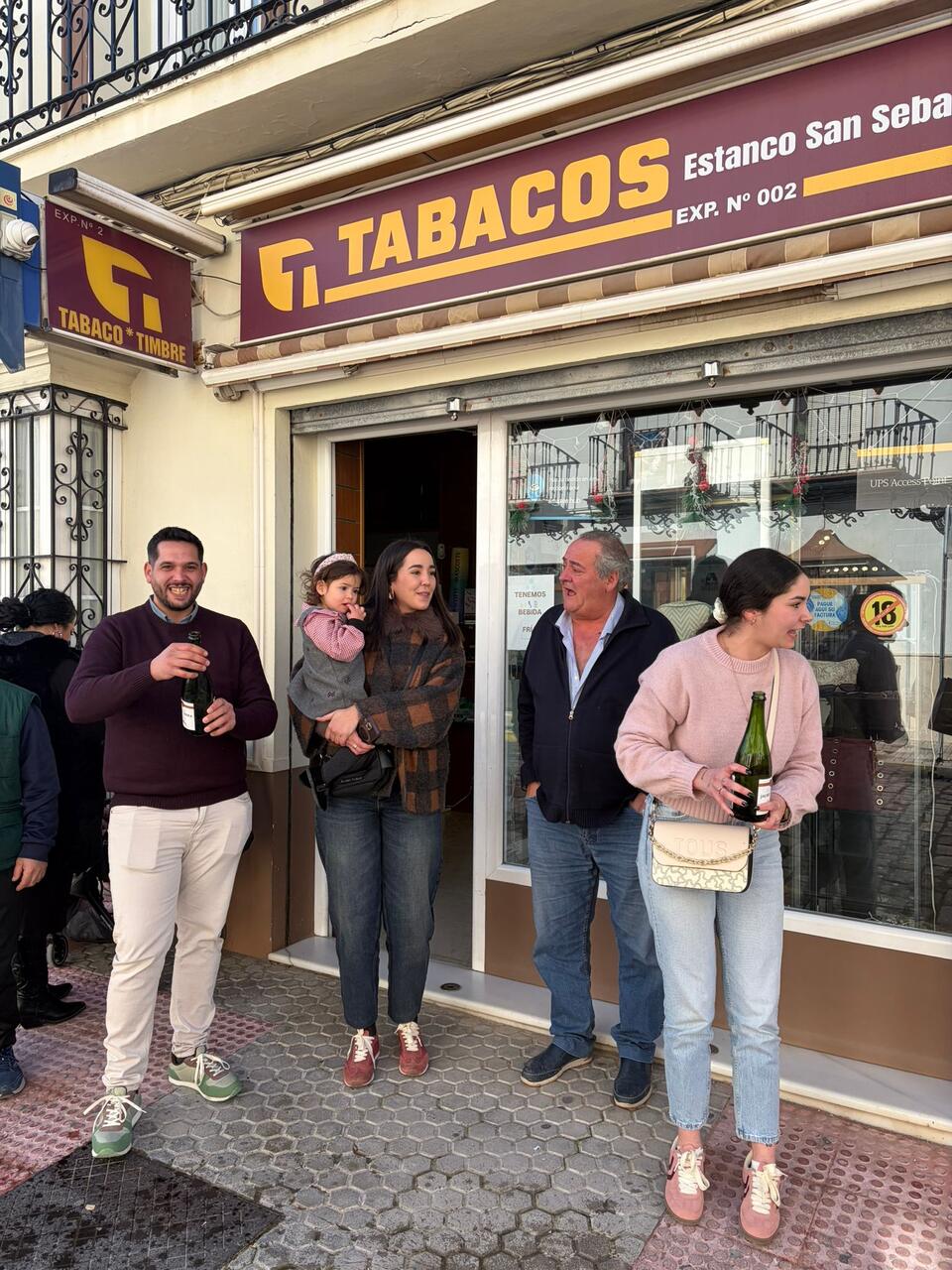Un estanco que fue traspasado hace un año y medio a Ángela y Sebastián, dos hermanos de Martín de la Jara que decidieron dejarlo todo y apostar por esta administración de Lotería en nuestra localidad. Ángela contaba a Diario Avanza que el 06.703 es un número que ellos no tenían, lo sacaron por la máquina y aún desconocen cuántos décimos han vendido, aunque aseguran que ellos no tienen ninguno. Hasta la administración se desplazó la familia al completo en este día de Reyes, con caras de alegría, incredulidad y emoción desbordada. Ángela y Sebastián abrieron dos botellas de champán para celebrarlo, agradeciendo al pueblo de Marchena su confianza y prometiendo más premios. ¡Enhorabuena!