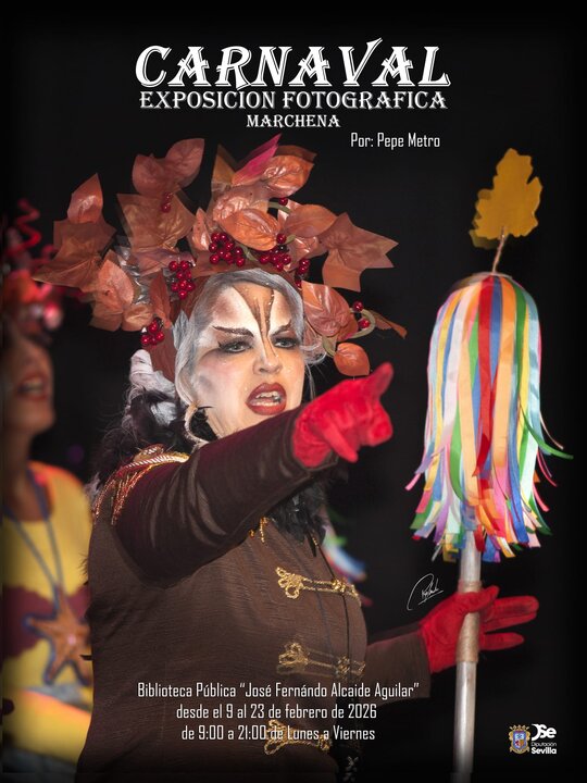 La Biblioteca Pública ‘José Fernando Alcalde Aguilar’ acoge desde este mes una exposición fotográfica dedicada al Carnaval de Marchena, una propuesta cultural que ofrece una mirada documental y artística a la evolución reciente de esta fiesta a través de imágenes tomadas en distintos momentos y escenarios del carnaval local.