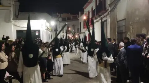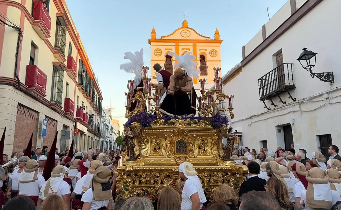 La Hermandad de la Humildad de Marchena ha vuelto a procesionar por las calles de la localidad este Miércoles Santo desde la Capilla de Santa Clara. A las ocho de la tarde, la Cruz de Guía de la cofradía salía por el pórtico de la capilla con el Señor de la Humildad y la Virgen de los Dolores en una jornada en la que el pueblo de Marchena se ha echado a la calle acompañado por el buen tiempo.