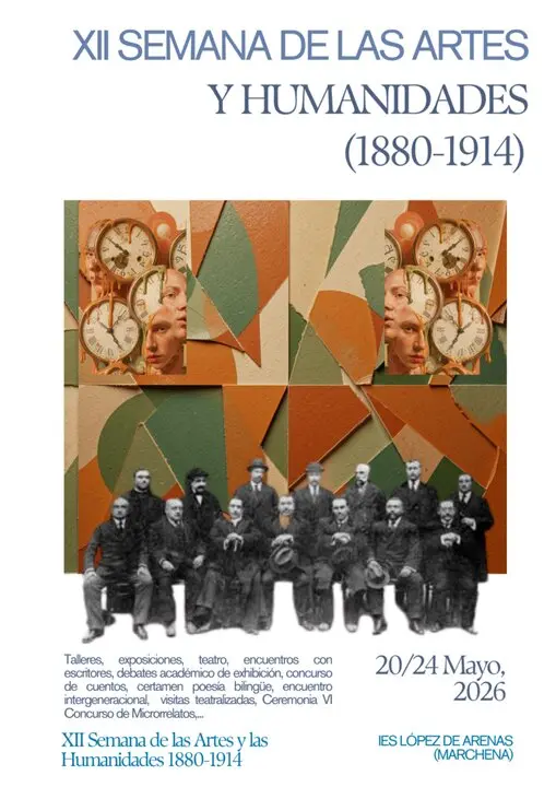 El instituto 'López de Arenas' ha presentado el cartel y la programación de su XII Semana de las Artes y las Humanidades, una cita plenamente consolidada en el calendario educativo y cultural de Marchena. En esta ocasión, las jornadas se desarrollarán del 20 al 24 de mayo y centrarán su mirada en el vibrante periodo histórico situado entre 1880 y 1914. Bajo esta temática, el centro educativo marchenero rendirá homenaje a movimientos tan determinantes como el Modernismo, la eclosión de las primeras Vanguardias y la profundidad literaria de la Generación del 98 en España.