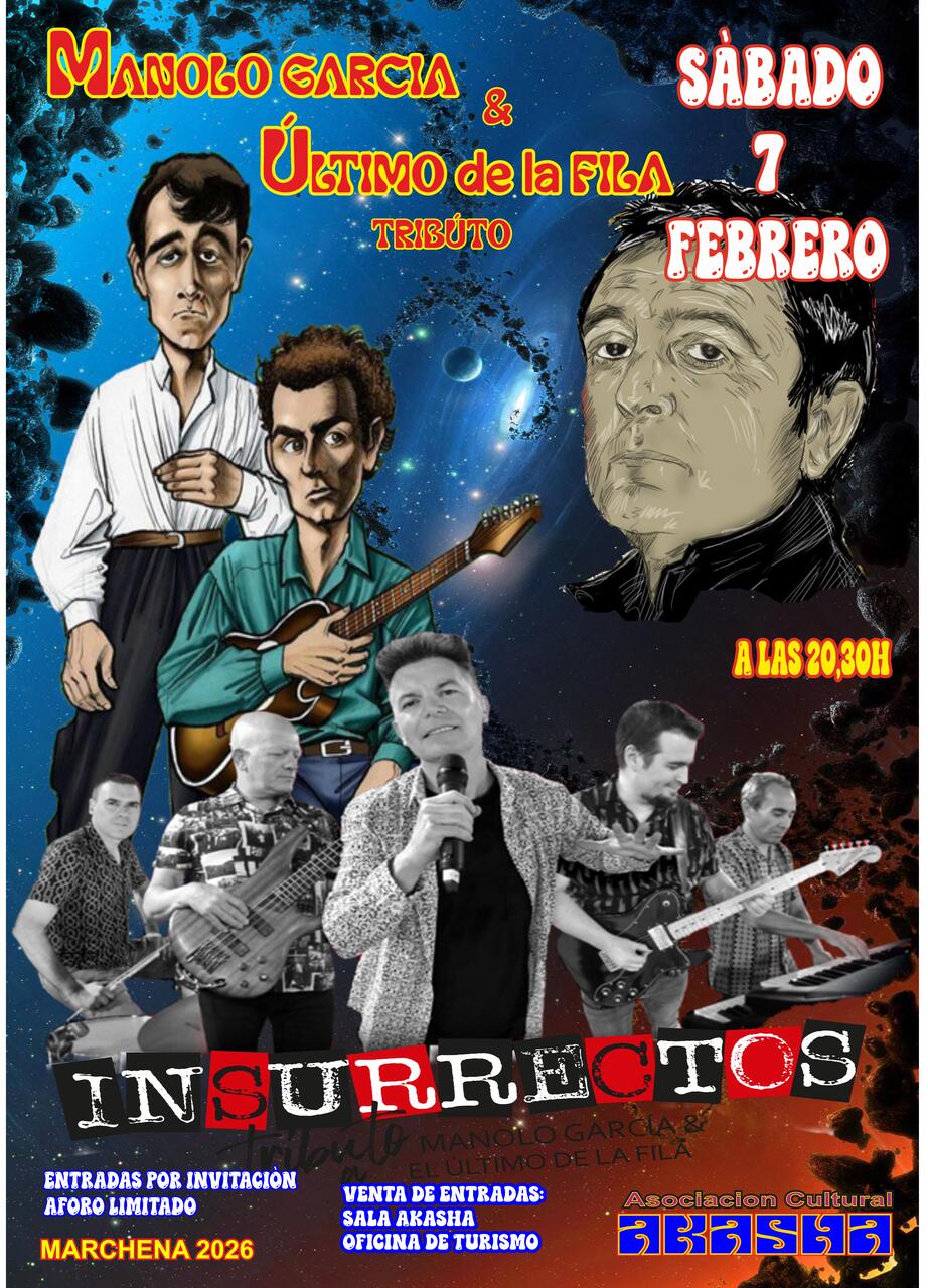 La Sala 'Akasha' de Marchena acogerá el próximo sábado 7 de febrero un concierto tributo dedicado a Manolo García y a El Último de la Fila, de la mano de la banda Insurrectos, en una cita pensada para los amantes del pop y el rock español.