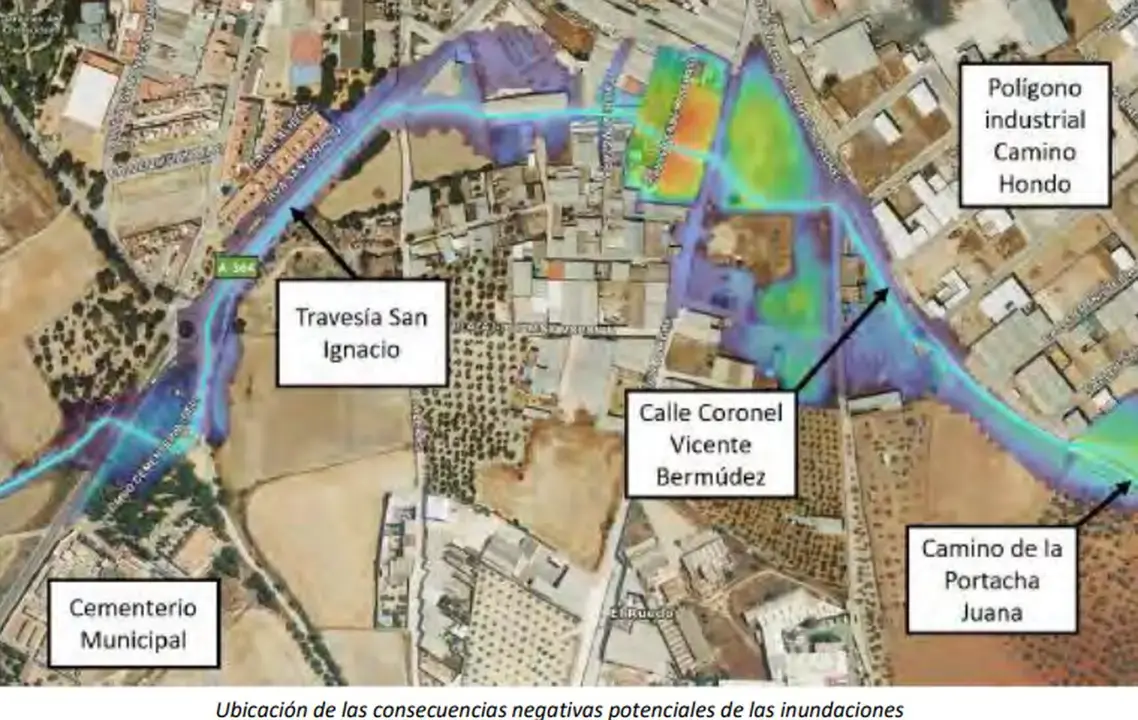 Los trabajos se desarrollarán en la Travesía de San Ignacio, camino de las Peñuelas, camino de Vista Alegre y Vicente Bermúdez Coronel. Entre las áreas históricamente más castigadas por las inundaciones se encuentran el polígono industrial Camino Hondo, la gasolinera de la A-364, viviendas de la travesía San Ignacio y el propio cementerio municipal.