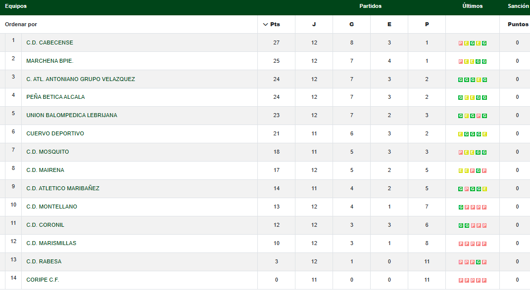 Ya será después del parón, en el fin de semana del 10-11 de enero en casa ante el Cabecense, líder de la categoría a dos puntos del Marchena.