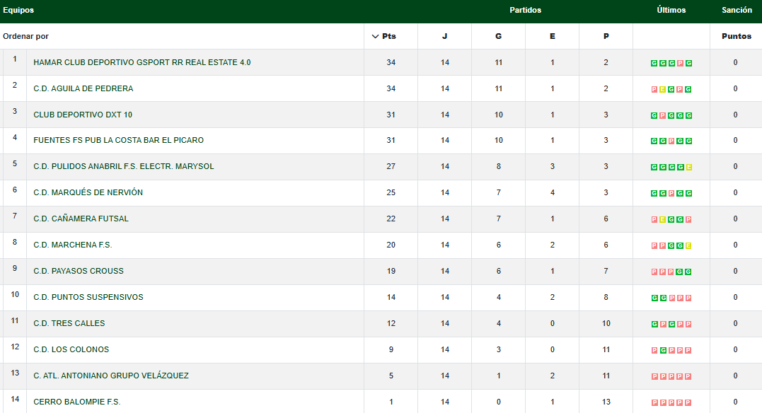 El próximo partido los marcheneros visitan al Hamar Gsport RR Real Estate 4.0 de Bormujos, líder del grupo que viene de ganarle 3-5 a Los Colonos.