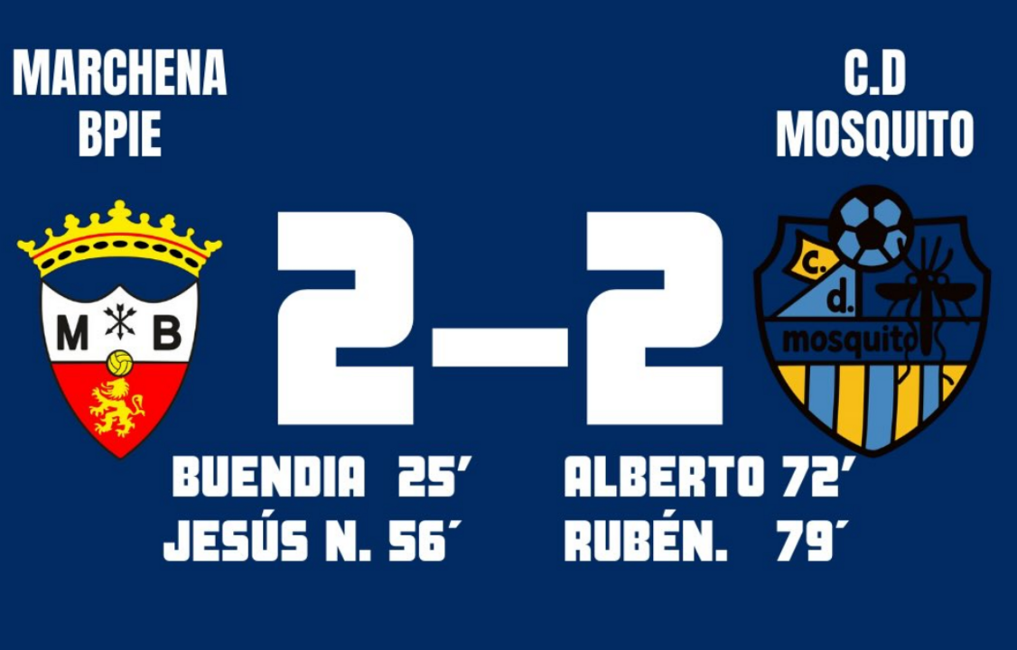 El Marchena Balompié vivió una tarde amarga en el 'Mariano Pulido' tras firmar un 2-2 frente al Mosquito en un encuentro que empezó con dominio local, pero que terminó escapándose en la recta final pese a la ventaja de dos tantos.