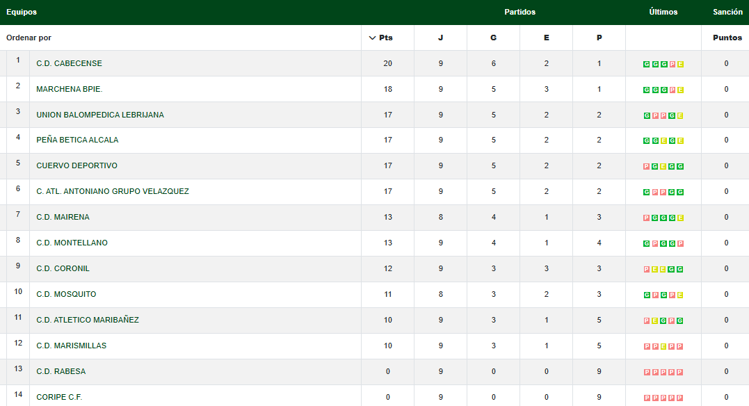 El empate deja al Marchena con la sensación de haber dejado escapar una victoria que tenía bien encarrilada. Con este resultado, el equipo suma ya su tercer tropiezo consecutivo entre liga y jornadas recientes: dos empates y una derrota que frenan su progresión, aunque se mantiene en la parte alta de la tabla con 18 puntos, apenas dos por debajo del líder, el C.D. Cabecense.