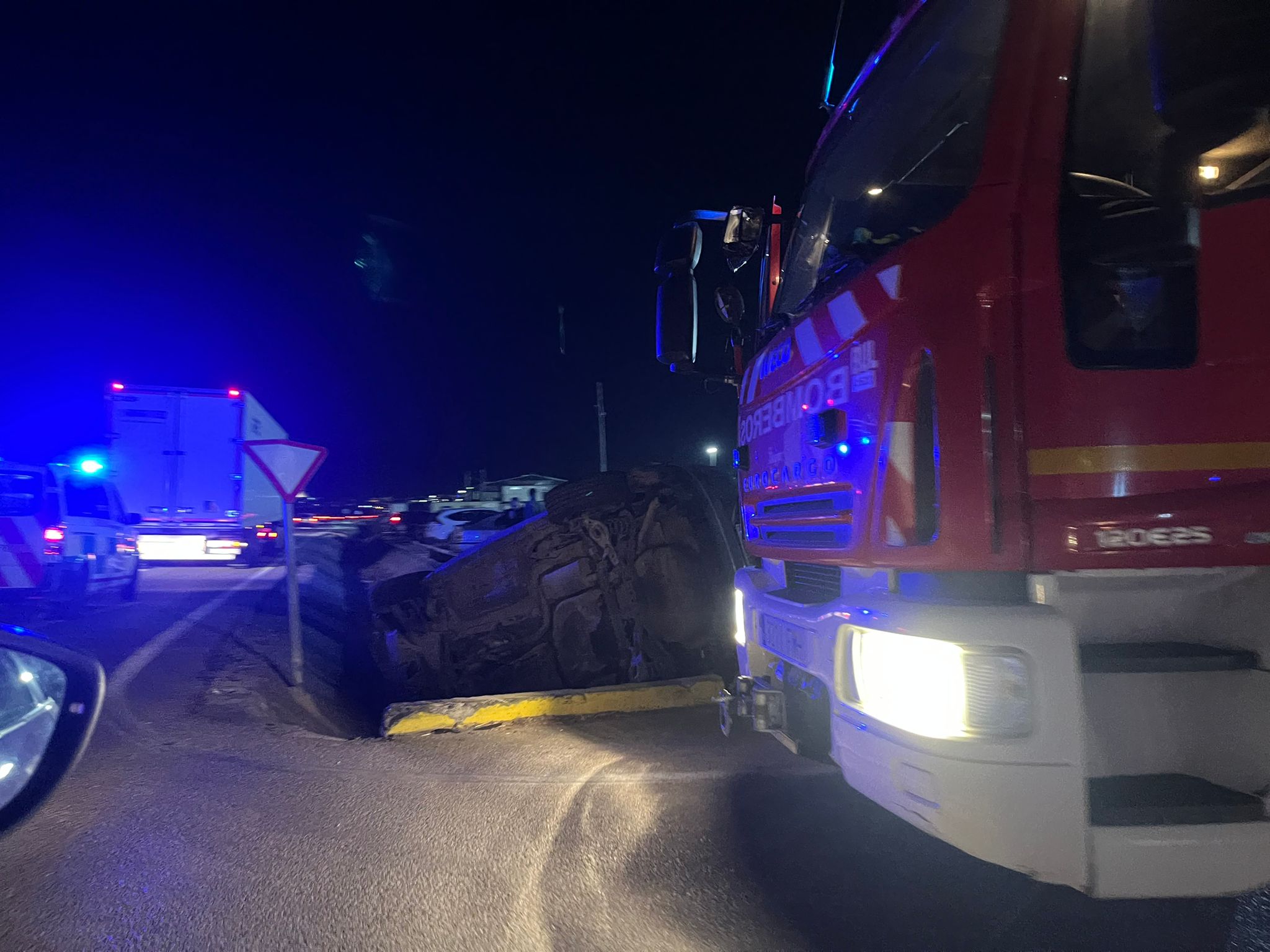 Un vehículo ha sufrido un fuerte accidente alrededor de las once de la noche de este lunes en la A-380, justo en la puerta de Procavi, en Marchena. Un turismo ha quedado completamente volcado en la cuneta y un camión parado justo en el arcén un poco más adelante, por lo que podría estar implicado en el accidente.