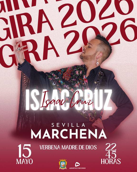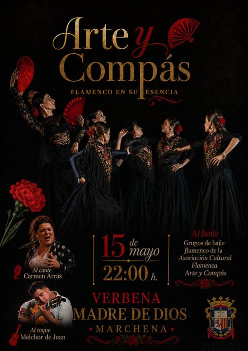 La jornada del 15 de mayo concentrará gran parte del peso artístico de la festividad. A las 22:00 horas, el espectáculo Arte y Compás llevará al escenario el talento de los grupos de baile de la Asociación Cultural Flamenca, contando con el cante de Carmen Arrás y el toque de Melchor de Juan. Casi de forma simultánea, a las 22:45 horas, el artista sevillano Isaac Cruz ofrecerá un recital dentro de su gira 2026, aportando su particular estilo al ambiente de la verbena en una noche que promete ser el epicentro musical del evento.