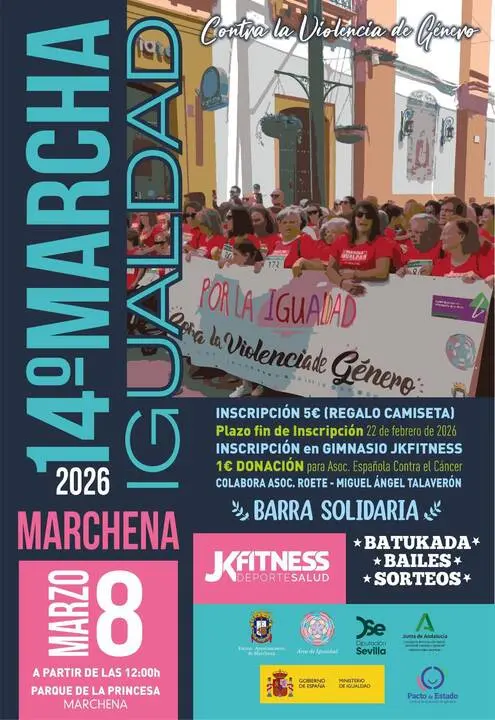 La Marcha por la Igualdad alcanza en 2026 su decimocuarta edición, convirtiéndose en una de las actividades más representativas del 8M en Marchena, con el respaldo de distintas administraciones y colectivos que colaboran en su organización y desarrollo.