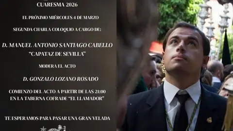 La conferencia correrá a cargo de Manuel Antonio Santiago Cabello, conocido como ‘Capataz de Sevilla’, una figura destacada dentro del ámbito cofrade andaluz.